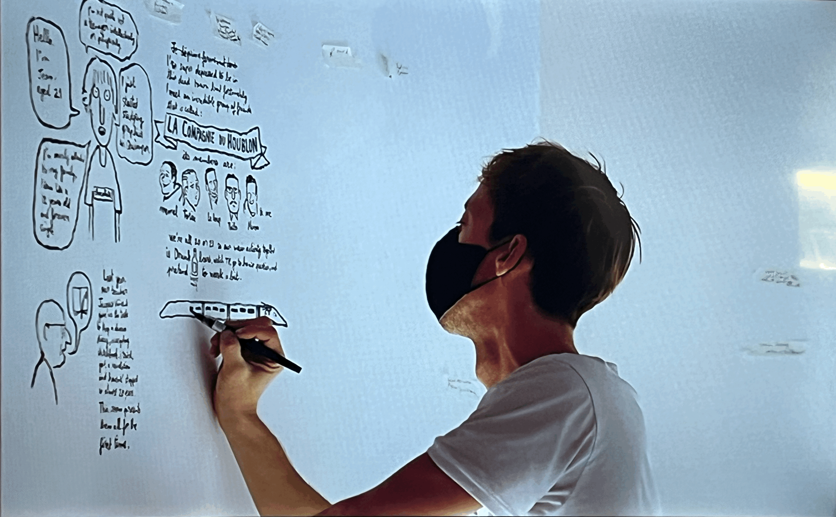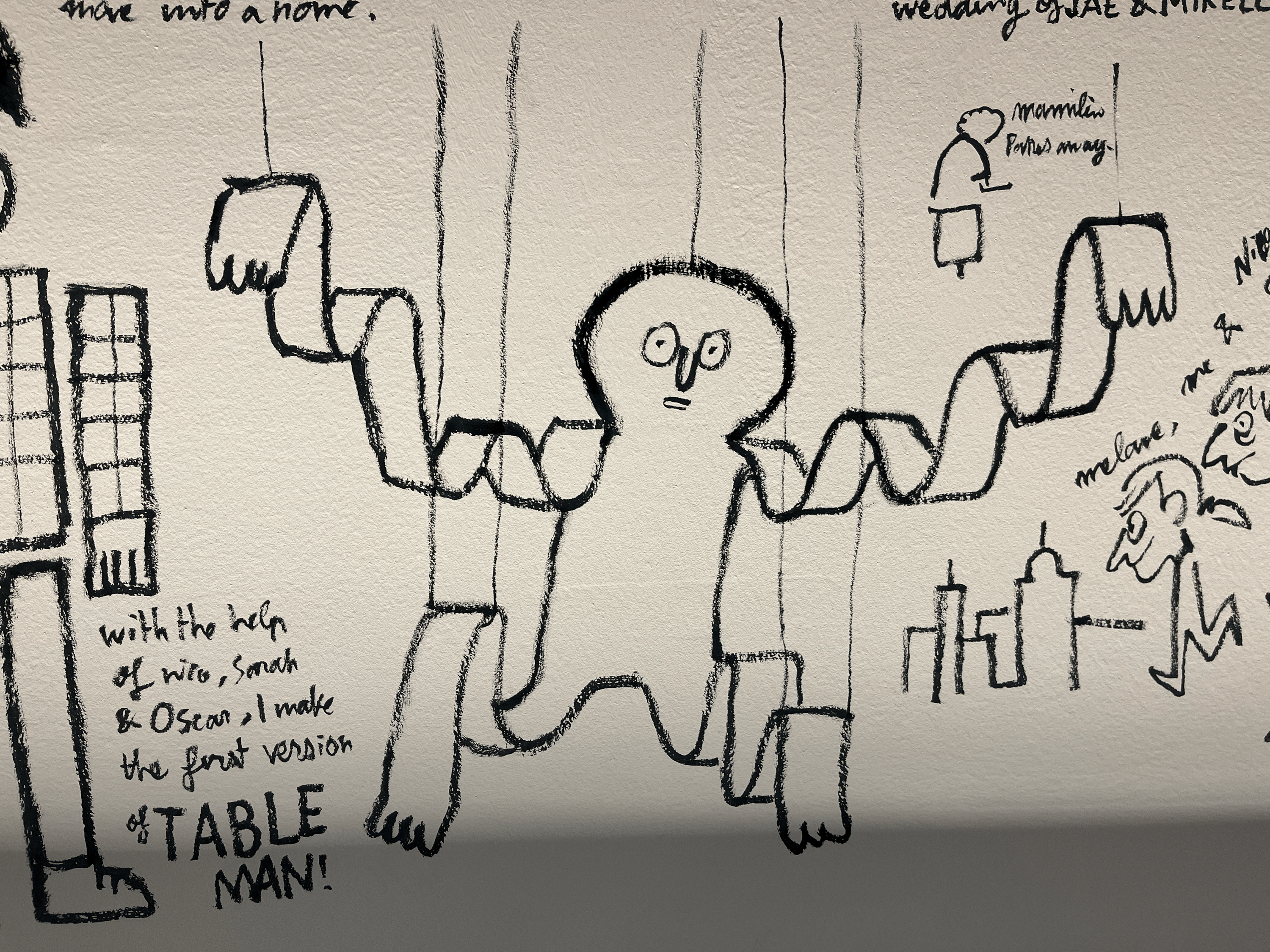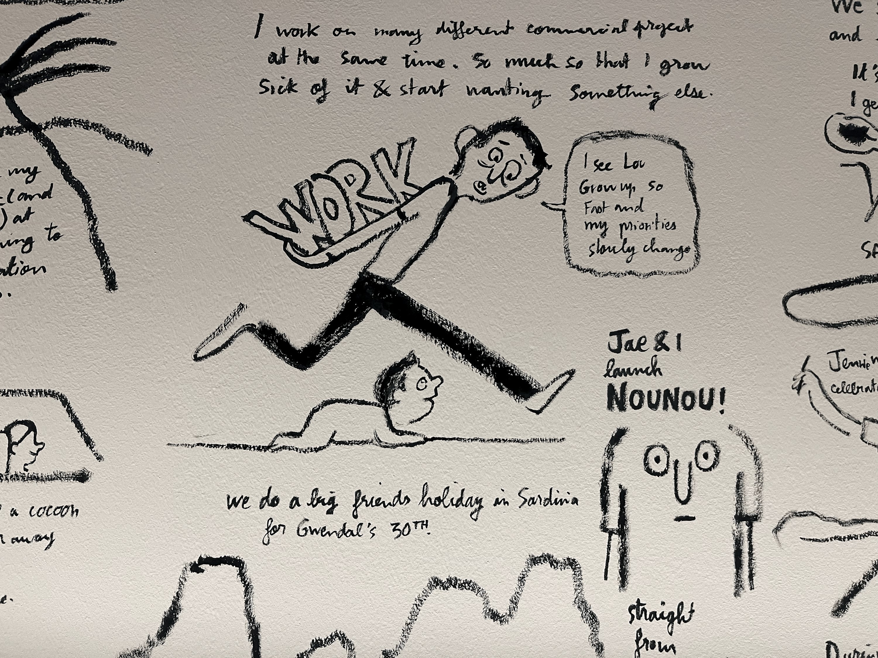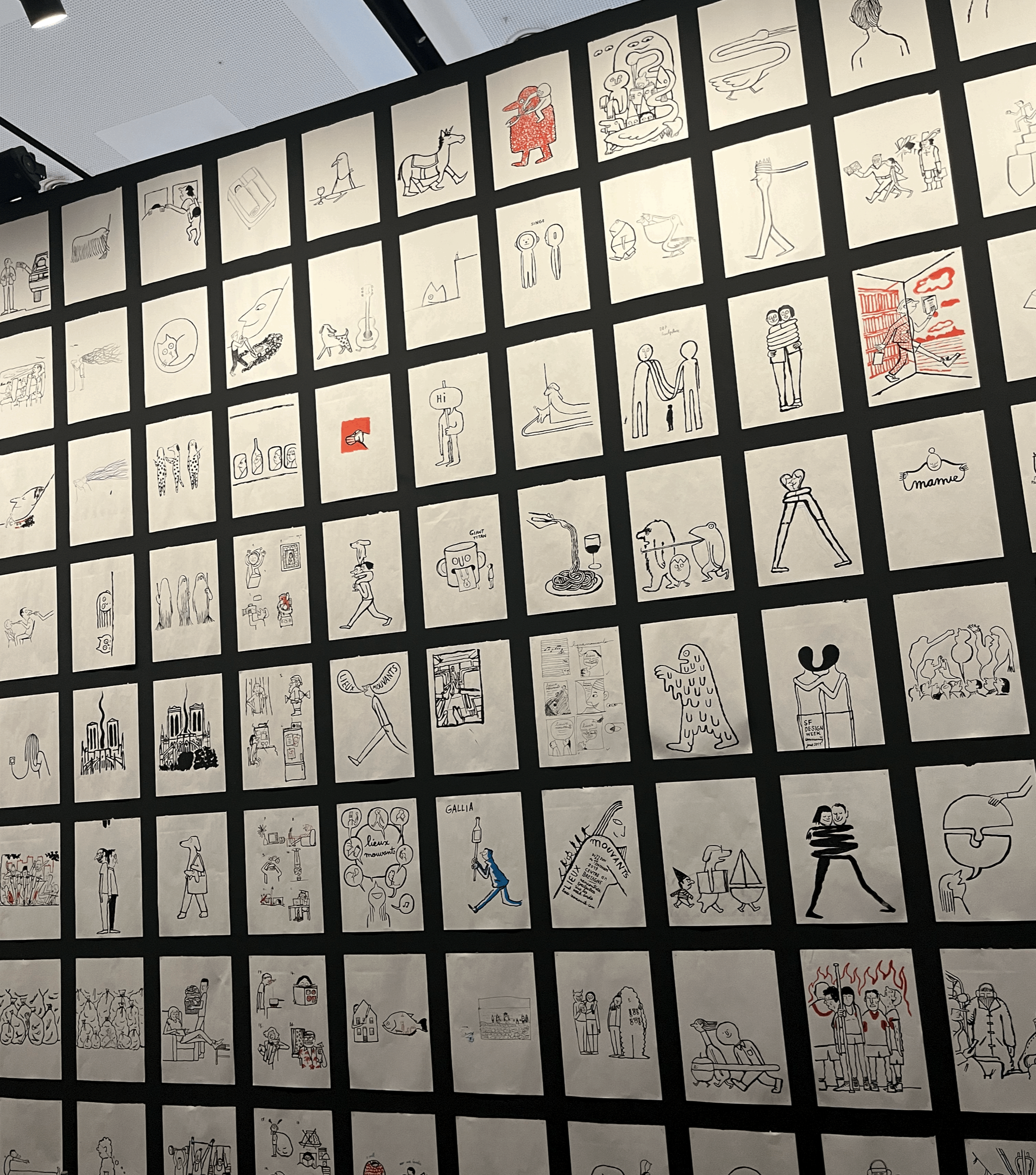 드로잉과 스케치를 일일이 검은 벽면에 붙여 놓은 공간도 있는데